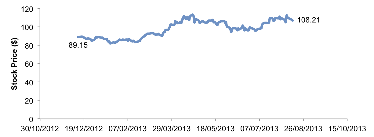 So how has these companies performed since the stock repurchase programs were announced? The following graphs show the stock price variation since the stock repurchase programs were announced.